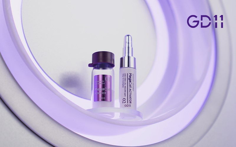 ‘GD11 메가셀 리프팅 앰플은 사용 직전 신선하게 사용할 수 있도록, 1제 메가셀 파우더와 2제 액티베이터를 분리했다. 1제에는 순도 100% 제대혈 줄기세포 배양액을 신선하게 동결건조하여 무려 1,470여가지 성장인자와 단백질을 파우더 형태로 안정화시켜 탄력, 장벽, 밀도 케어 등 전반적인 피부 고민을 개선시켜주며, 2제에는 리포좀 제대혈 줄기세포 배양액이 400,000ppm이 함유되어 피부 탄력, 생기, 윤기 케어에 효과적인 것이 특징이다.